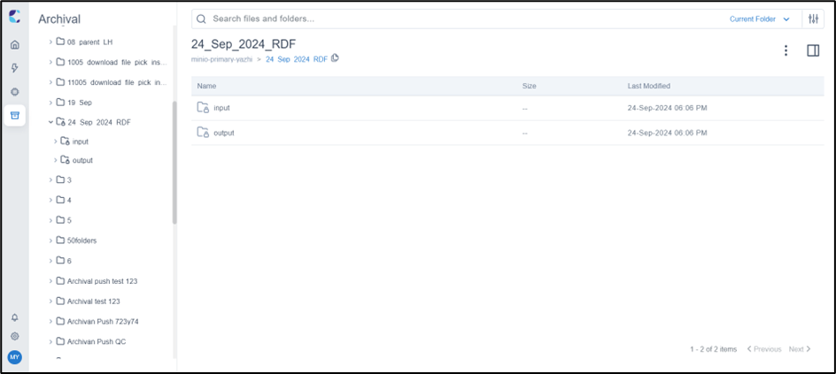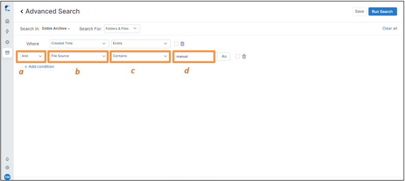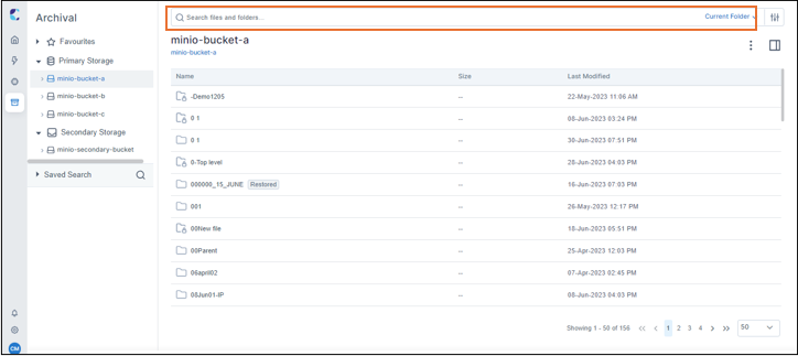Archival offers two types of searches. The first is a Quick search, which you can perform using the search bar. The second is the Advanced Search feature, which simplifies data retrieval by searching based on the metadata properties of files and folders.