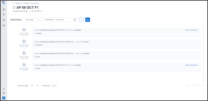 All actions performed within a file or folder are recorded in the File Activities and Folder Activities. You can view these activities by navigating to the 'File Activities and Folder Activities' page respectively.