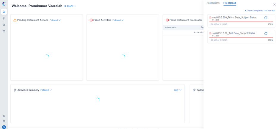The file upload queue lets you monitor the status and progress percentage of file uploads. You can also track manual file uploads through this queue.