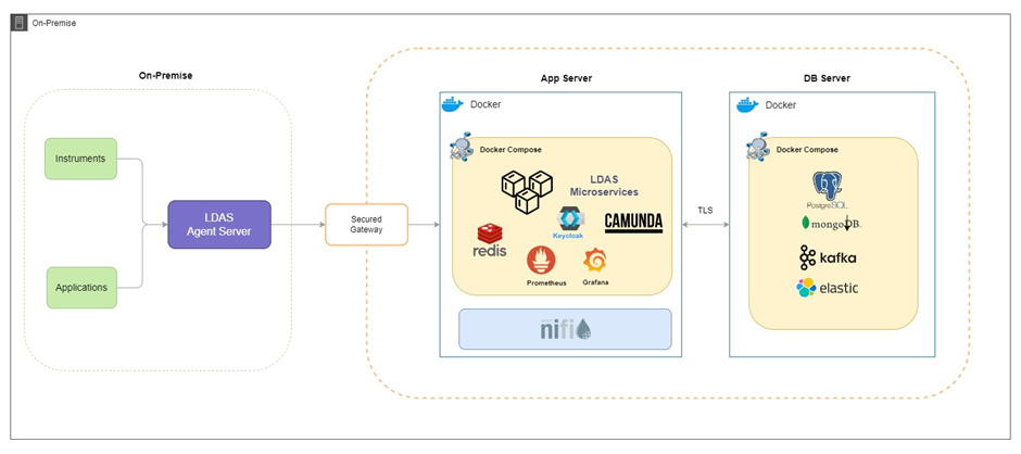 - Instruments and applications transfer data securely to the LDAS application through a Secured Gateway, ensuring authenticated connectivity and protection against unauthorized access. The LDAS Agent Server interfaces with these instruments and applications to facilitate data ingestion.