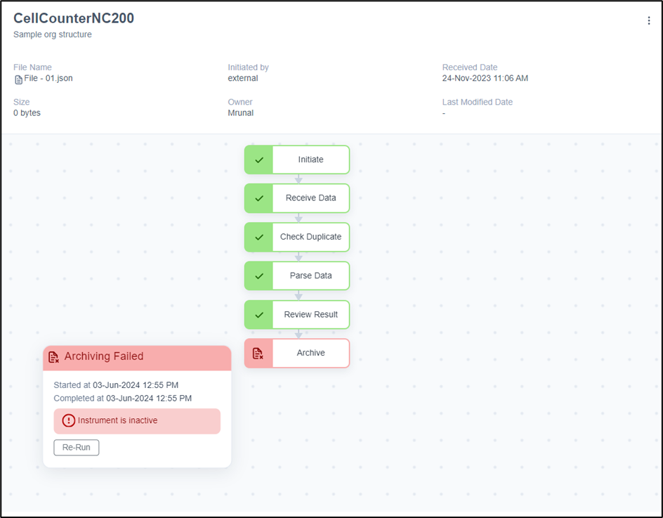- Owner Name - You can see the owner of the instrument file or data. If the workflow is triggered by an external system, the corresponding username will be displayed.