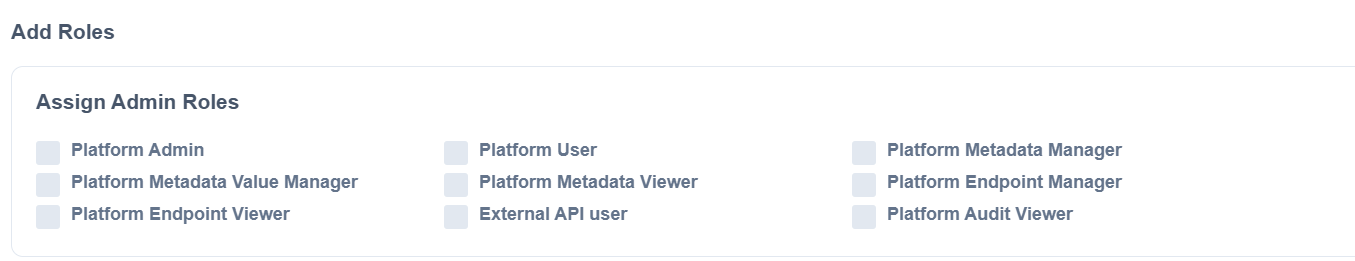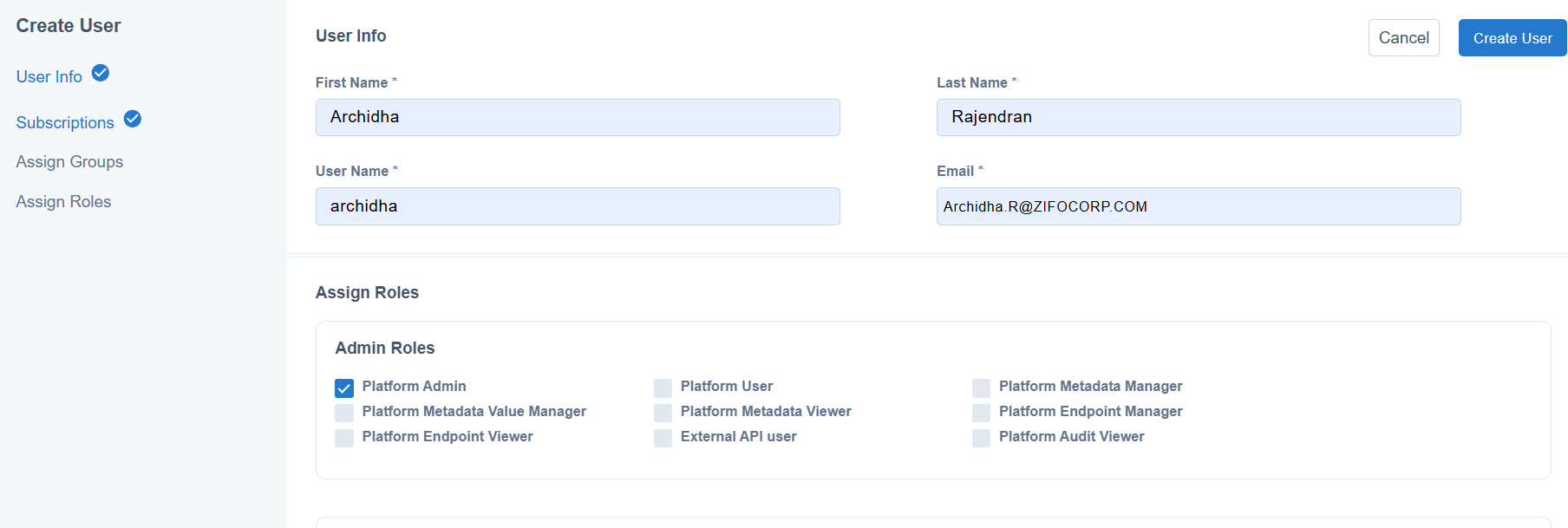 | Assign Roles | Assign Admin Roles, Operational Roles across the organization and Folder Roles for the user as per requirements. | No |