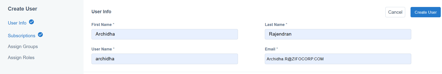 | Assign Groups | Provide the groups where the user belongs. The user can be in multiple groups. | No |